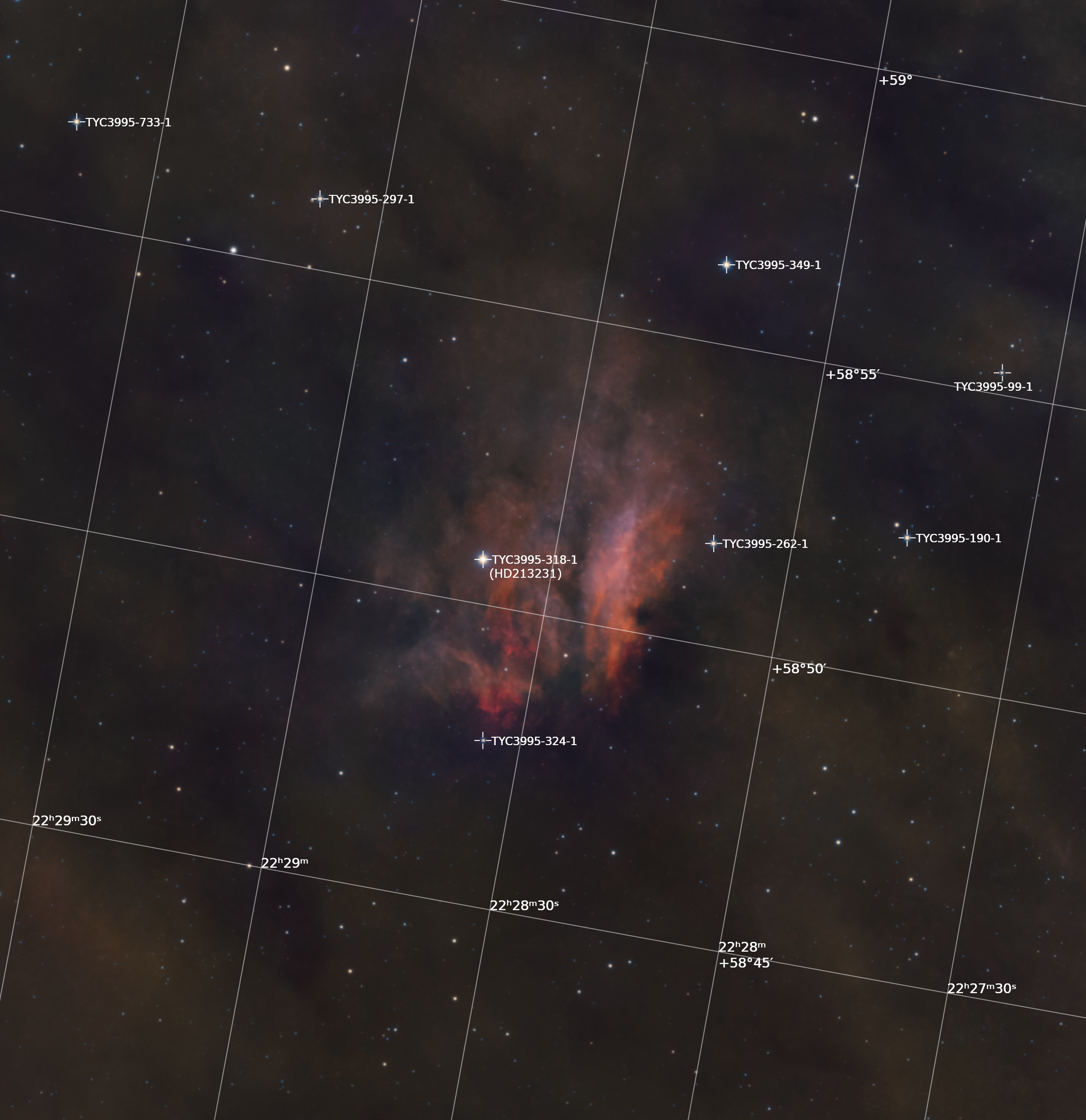 Center (J2000): RA 22 28 30.57 Dec +58 50 52.78